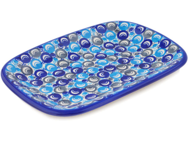 This Polish Pottery 11" Platter - Blue Peacock Eye is handmade and handpainted by the Ceramika Bona factory in Boleslawiec, Poland.