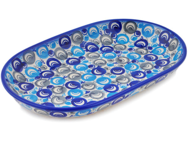 This Polish Pottery 11" Platter - Blue Peacock Eye is handmade and handpainted by the Ceramika Bona factory in Boleslawiec, Poland.