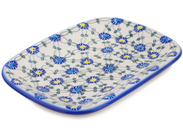 This Polish Pottery 11" Platter - Blue Thistle Beauty is handmade and handpainted by the Ceramika Bona factory in Boleslawiec, Poland.