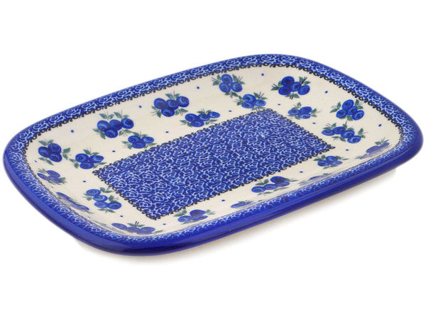 This Polish Pottery 11" Platter - Lovely Blueberries is handmade and handpainted by the Ceramika Bona factory in Boleslawiec, Poland.