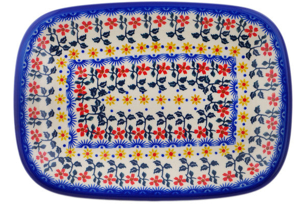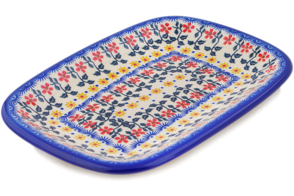This Polish Pottery 11" Platter - Red Sunflower is handmade and handpainted by the Ceramika Bona factory in Boleslawiec, Poland.