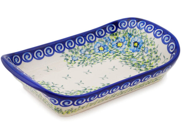 This Polish Pottery 11" Platter with Handles - Gorgeous Morning Glory is handmade and handpainted by the Ceramika Bona factory in Boleslawiec, Poland.