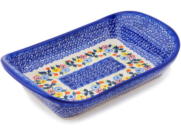 This Polish Pottery 11" Platter with Handles - Pastel Spring Wreath is handmade and handpainted by the Ceramika Bona factory in Boleslawiec, Poland.