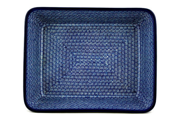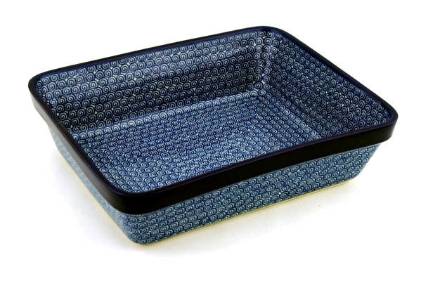 This Polish Pottery 11" Rectangular Baker - Baltic Blue is handmade and handpainted by the Ceramika Artystyczna factory in Boleslawiec, Poland.
