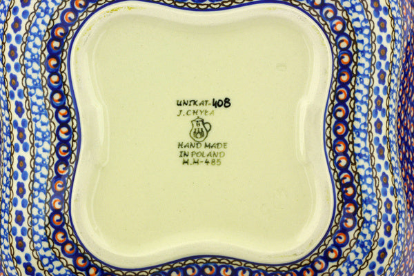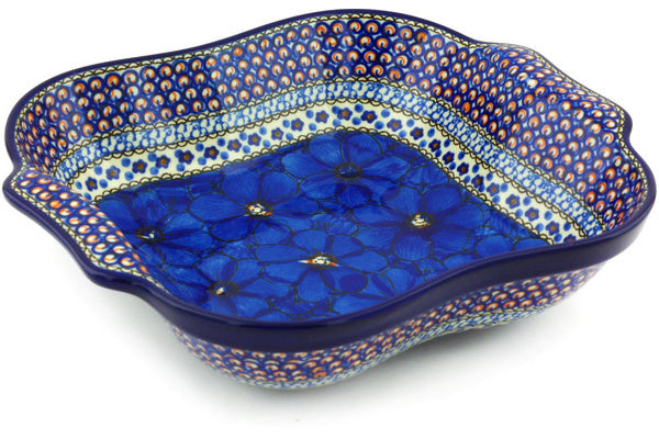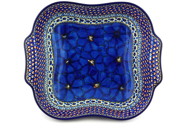 This Polish Pottery 11" Square Baker with Handles - Cobalt Poppies is handmade and handpainted by the Ceramika Artystyczna factory in Boleslawiec, Poland.