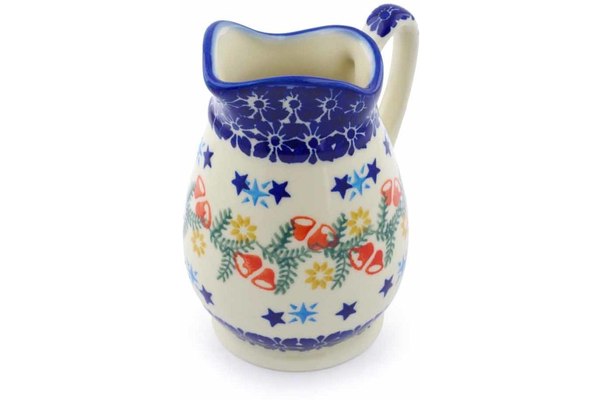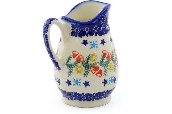 This Polish Pottery 12 oz Creamer - Wreath Of Bells is handmade and handpainted by the Ceramika Bona factory in Boleslawiec, Poland.