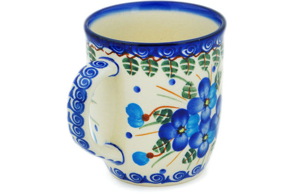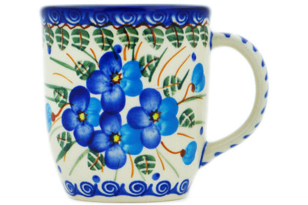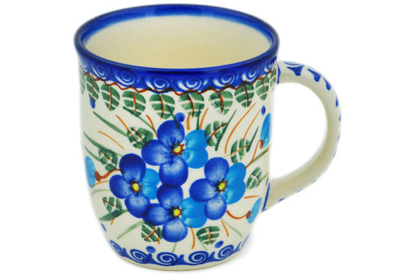 This Polish Pottery 12 oz Mug - Blue Pansy is handmade and handpainted by the Ceramika Bona factory in Boleslawiec, Poland.