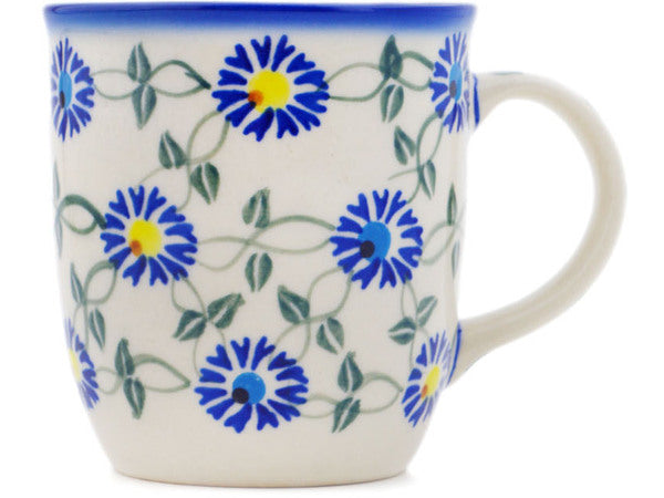 This Polish Pottery 12 oz Mug - Blue Thistle Beauty is handmade and handpainted by the Ceramika Bona factory in Boleslawiec, Poland.