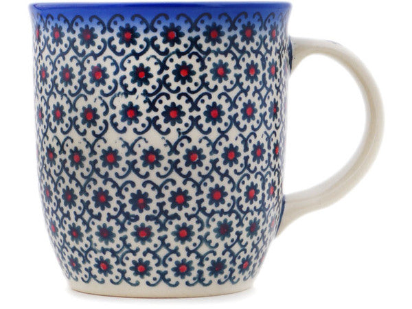 This Polish Pottery 12 oz Mug - Field Of Black Daisies is handmade and handpainted by the Ceramika Bona factory in Boleslawiec, Poland.