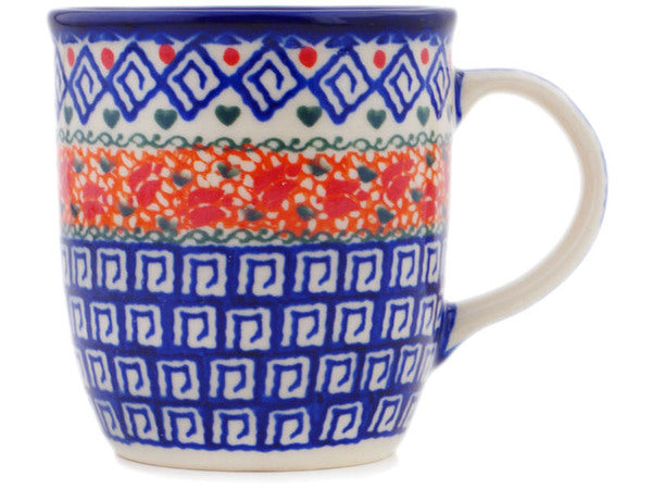 This Polish Pottery 12 oz Mug - Grecian Fire Tulips is handmade and handpainted by the Ceramika Bona factory in Boleslawiec, Poland.