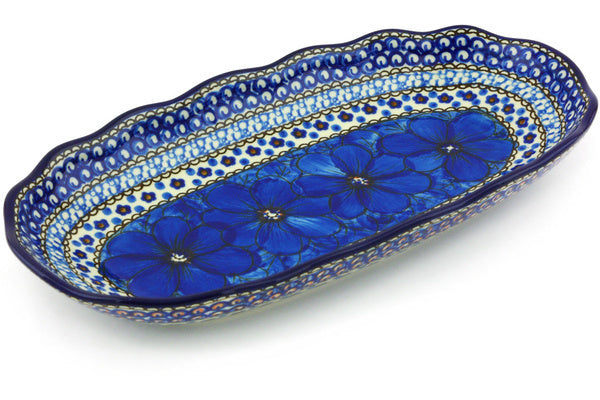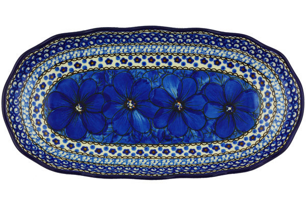 This Polish Pottery 12" Platter - Cobalt Poppies is handmade and handpainted by the Ceramika Artystyczna factory in Boleslawiec, Poland.