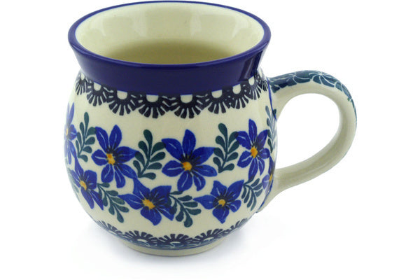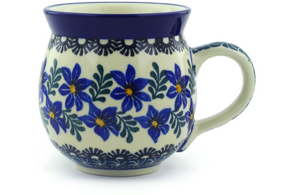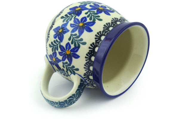 This Polish Pottery 12 oz Bubble Mug - Blue Violets is handmade and handpainted by the Ceramika Artystyczna factory in Boleslawiec, Poland.