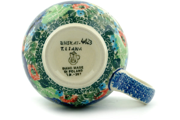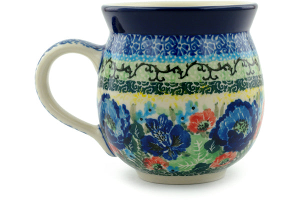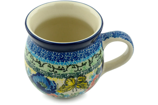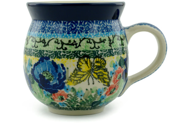 This Polish Pottery 12 oz Bubble Mug - Yellow Monarch Meadow is handmade and handpainted by the Ceramika Artystyczna factory in Boleslawiec, Poland.