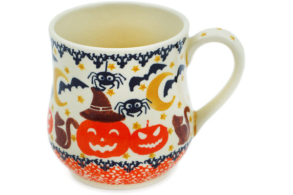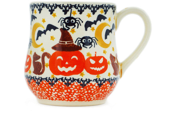 This Polish Pottery 13 oz Mug - Halloween Spooky Pumpkin is handmade and handpainted by the Ceramika Bona factory in Boleslawiec, Poland.