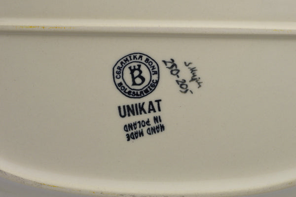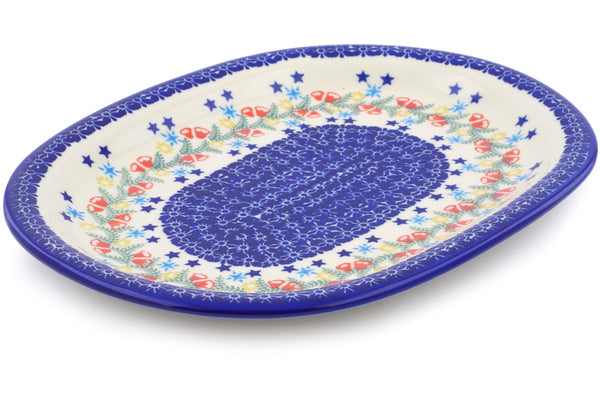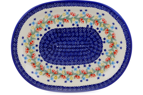 This Polish Pottery 14" Oval Platter - Wreath Of Bells is handmade and handpainted by the Ceramika Bona factory in Boleslawiec, Poland.