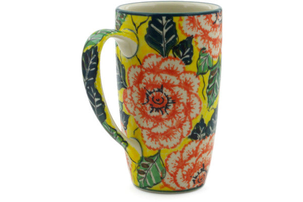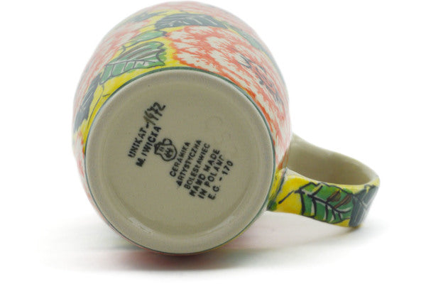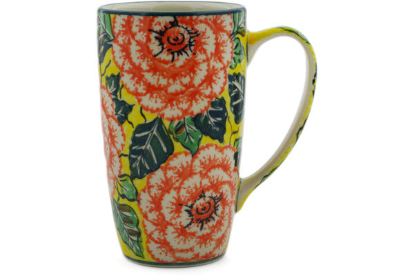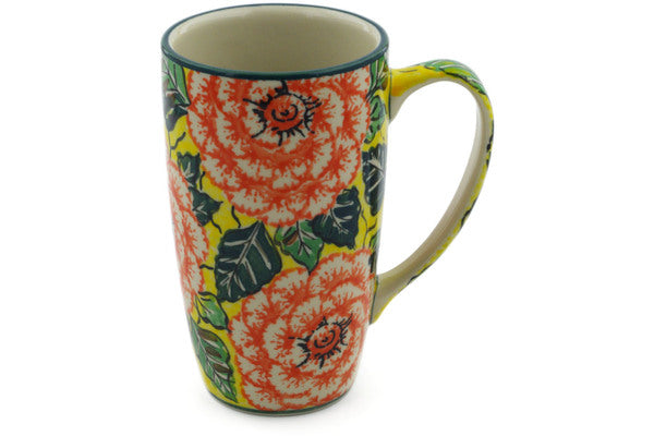 This Polish Pottery 14 oz Mug - Orange Peonies is handmade and handpainted by the Ceramika Artystyczna factory in Boleslawiec, Poland.