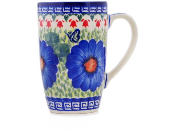 This Polish Pottery 14 oz Mug - Brilliant Butterfly Popp is handmade and handpainted by the Ceramika Bona factory in Boleslawiec, Poland.