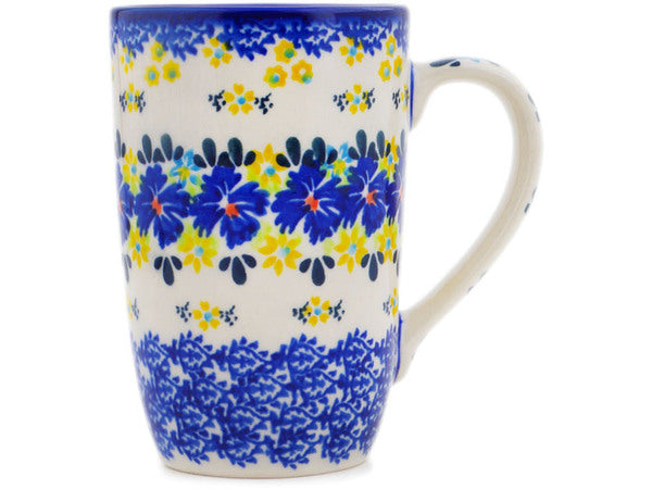 This Polish Pottery 14 oz Mug - Cornflower Meadow is handmade and handpainted by the Ceramika Bona factory in Boleslawiec, Poland.