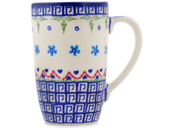 This Polish Pottery 14 oz Mug - Little Blue Flowers is handmade and handpainted by the Ceramika Bona factory in Boleslawiec, Poland.