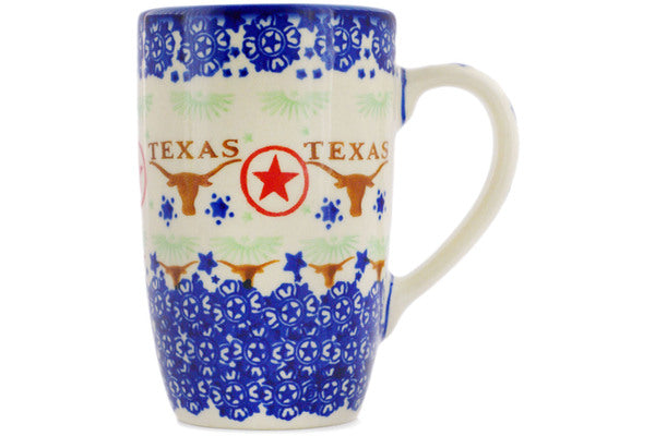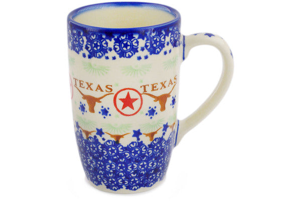 This Polish Pottery 14 oz Mug - Texas State is handmade and handpainted by the Ceramika Bona factory in Boleslawiec, Poland.