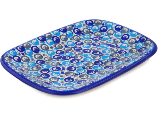 This Polish Pottery 14" Platter - Blue Peacock Eye is handmade and handpainted by the Ceramika Bona factory in Boleslawiec, Poland.