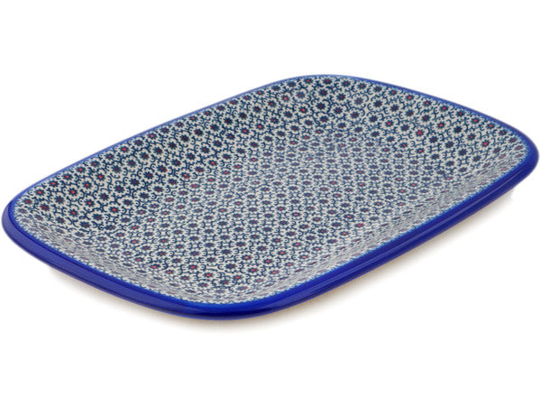 This Polish Pottery 14" Platter - Field Of Black Daisies is handmade and handpainted by the Ceramika Bona factory in Boleslawiec, Poland.