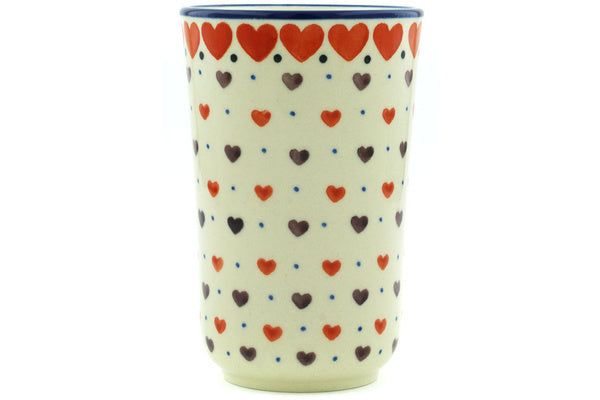 This Polish Pottery 15 oz Tumbler - Red Hearts Delight is handmade and handpainted by the Ceramika Artystyczna factory in Boleslawiec, Poland.