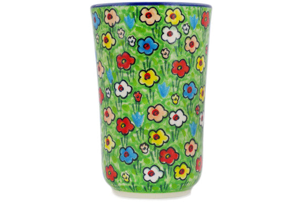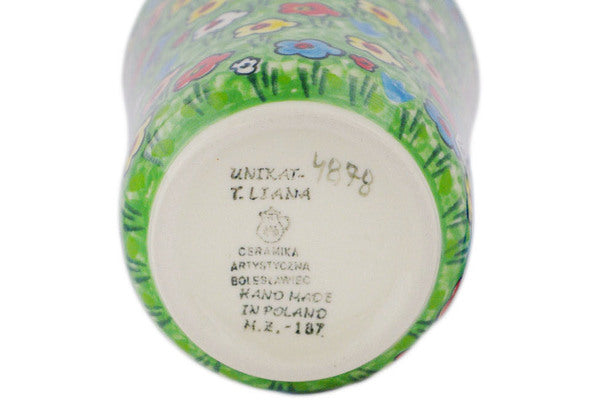 This Polish Pottery 15 oz Tumbler - Whimsical Garden is handmade and handpainted by the Ceramika Artystyczna factory in Boleslawiec, Poland.