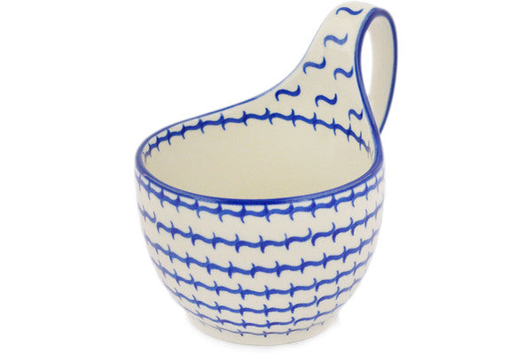 This Polish Pottery 6" Bowl with Loop-Handle - 2960X is handmade and handpainted by the Ceramika Artystyczna factory in Boleslawiec, Poland.