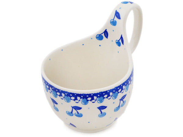 This Polish Pottery 6" Bowl with Loop-Handle - Iced Cherries is handmade and handpainted by the Ceramika Artystyczna factory in Boleslawiec, Poland.