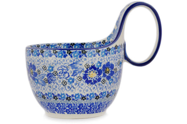 This Polish Pottery 6" Bowl with Loop-Handle - Ultramarine is handmade and handpainted by the Ceramika Artystyczna factory in Boleslawiec, Poland.