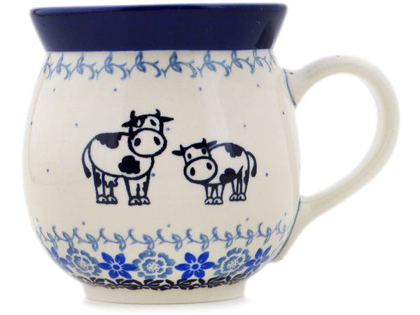 This Polish Pottery 16 oz Bubble Mug - Happy Cows is handmade and handpainted by the Ceramika Artystyczna factory in Boleslawiec, Poland.