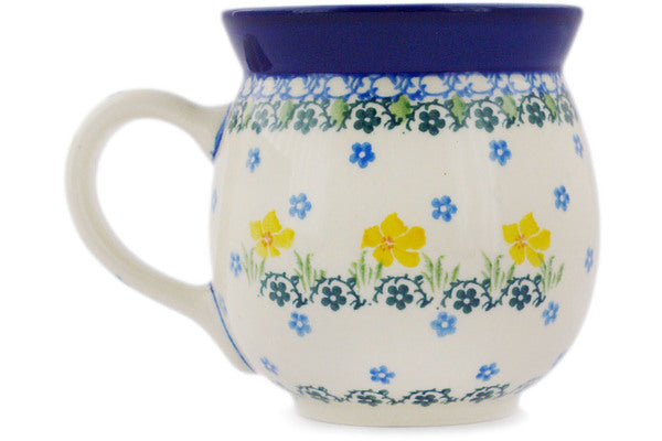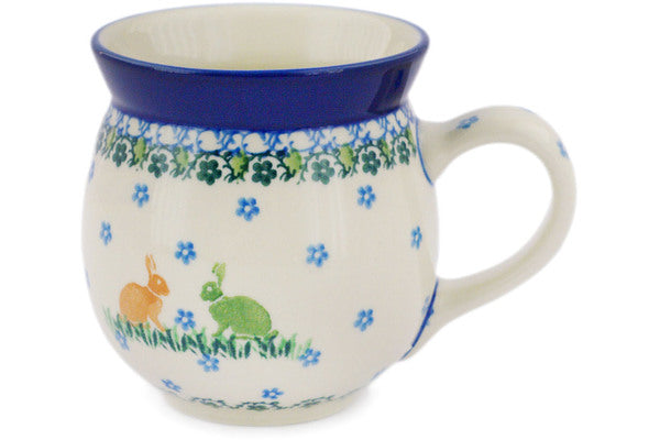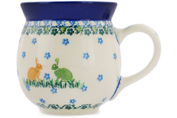 This Polish Pottery 16 oz Bubble Mug - Happy Hares is handmade and handpainted by the Ceramika Artystyczna factory in Boleslawiec, Poland.