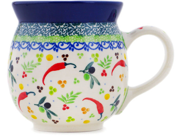 This Polish Pottery 16 oz Bubble Mug - Pepper Perfection is handmade and handpainted by the Ceramika Artystyczna factory in Boleslawiec, Poland.