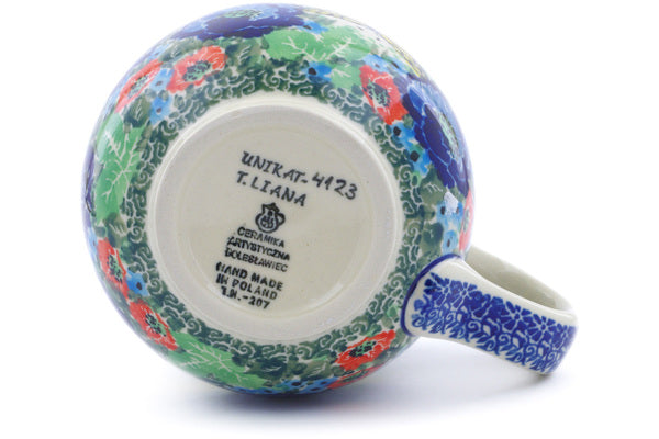 This Polish Pottery 16 oz Bubble Mug - Yellow Monarch Meadow is handmade and handpainted by the Ceramika Artystyczna factory in Boleslawiec, Poland.