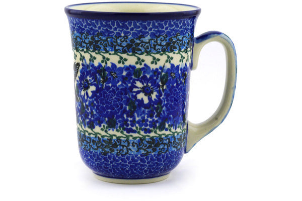 This Polish Pottery 17 oz Mug - Hummingbird Blue is handmade and handpainted by the Ceramika Artystyczna factory in Boleslawiec, Poland.