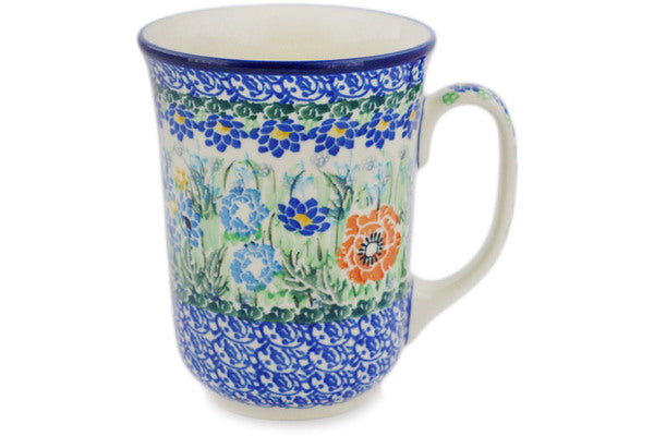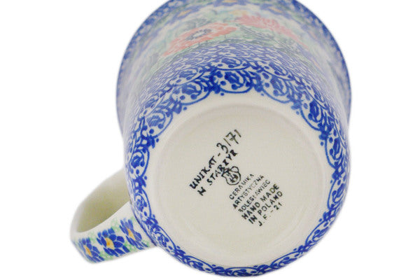 This Polish Pottery 17 oz Mug - Loropetalum Garden is handmade and handpainted by the Ceramika Artystyczna factory in Boleslawiec, Poland.