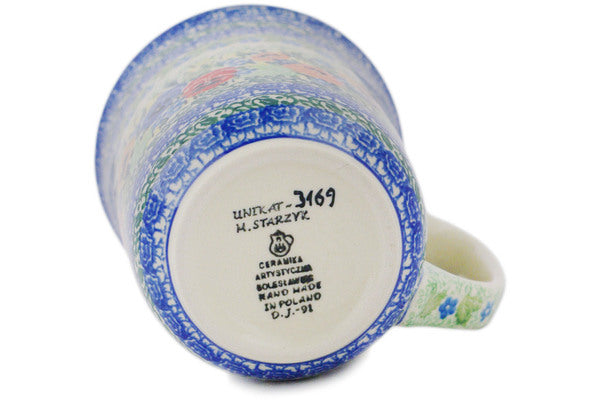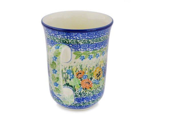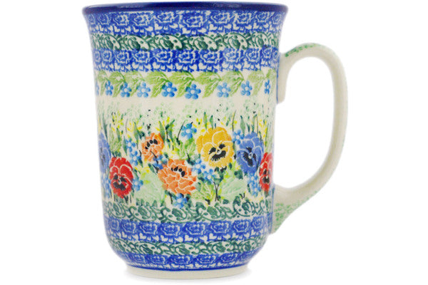 This Polish Pottery 17 oz Mug - Pansy Dance is handmade and handpainted by the Ceramika Artystyczna factory in Boleslawiec, Poland.