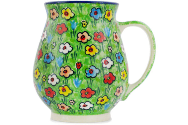 This Polish Pottery 17 oz Mug - Whimsical Garden is handmade and handpainted by the Ceramika Artystyczna factory in Boleslawiec, Poland.