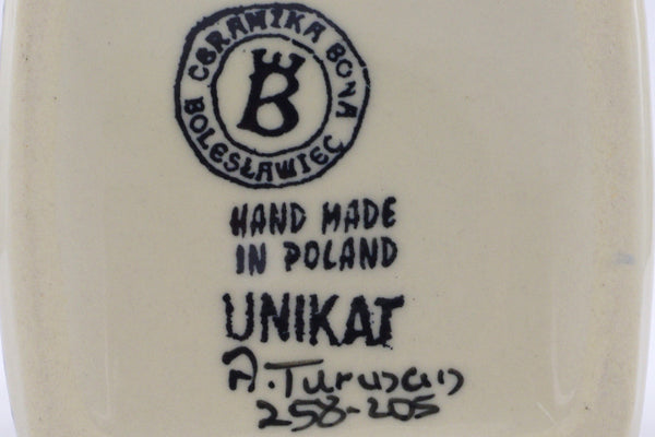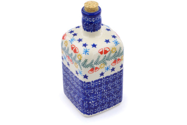 This Polish Pottery 18 oz Bottle - Wreath Of Bells is handmade and handpainted by the Ceramika Bona factory in Boleslawiec, Poland.