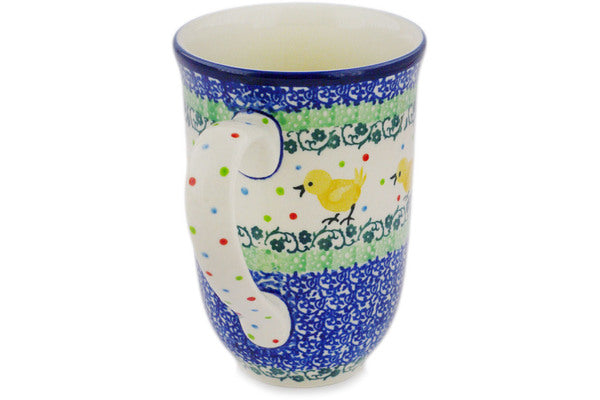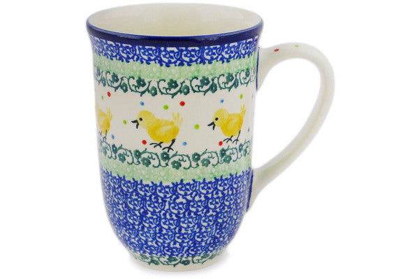 This Polish Pottery 19 oz Mug - Pretty Pullet is handmade and handpainted by the Ceramika Artystyczna factory in Boleslawiec, Poland.