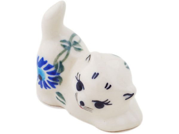 This Polish Pottery 2" Cat Figurine - Blue Thistle Beauty is handmade and handpainted by the Ceramika Bona factory in Boleslawiec, Poland.