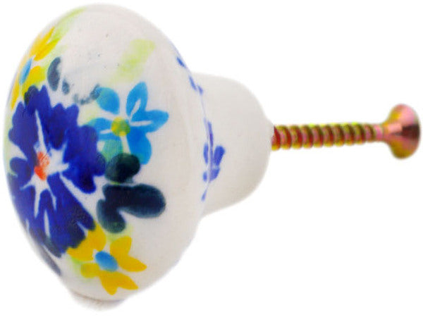 This Polish Pottery 2" Drawer Pull Knob - Cornflower Meadow is handmade and handpainted by the Ceramika Bona factory in Boleslawiec, Poland.