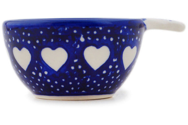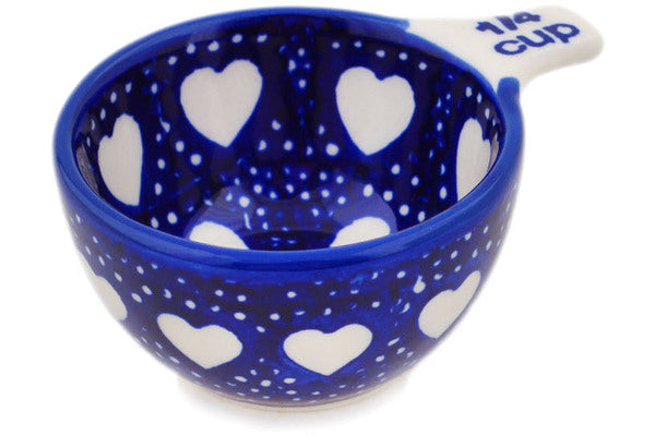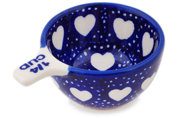 This Polish Pottery 2 oz Measuring Cup - Heart's Full Of Love is handmade and handpainted by the Manufaktura factory in Boleslawiec, Poland.