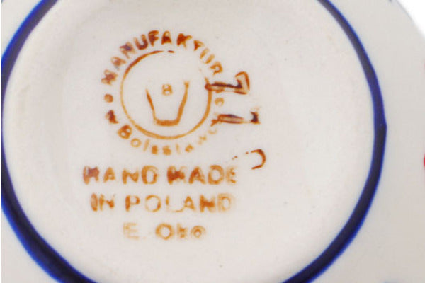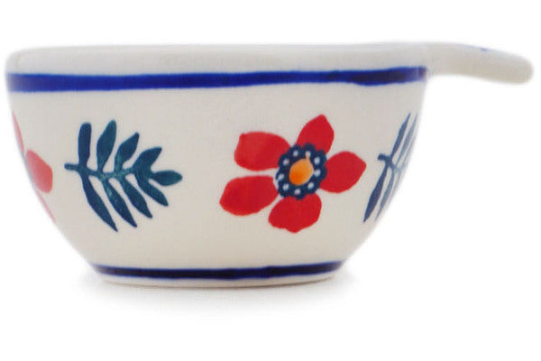 This Polish Pottery 2 oz Measuring Cup - Poppies And Ferns is handmade and handpainted by the Manufaktura factory in Boleslawiec, Poland.