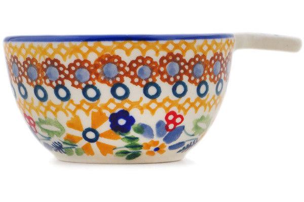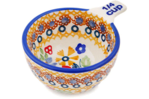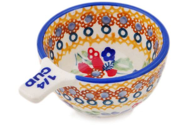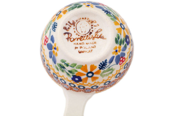 This Polish Pottery 2 oz Measuring Cup - Summer Bouquet is handmade and handpainted by the Manufaktura factory in Boleslawiec, Poland.