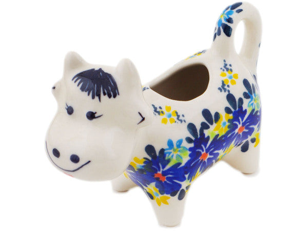 This Polish Pottery 2 oz Cow Shaped Creamer - Cornflower Meadow is handmade and handpainted by the Ceramika Bona factory in Boleslawiec, Poland.
