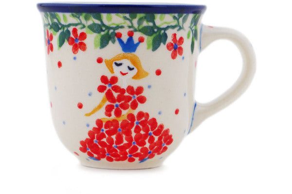 This Polish Pottery 2 oz Espresso Cup - Princess In A Red Dress is handmade and handpainted by the Ceramika Artystyczna factory in Boleslawiec, Poland.