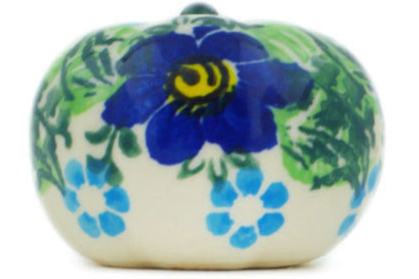 This Polish Pottery 2" Pumpkin Figurine - Blue Floral Day is handmade and handpainted by the Dalia factory in Boleslawiec, Poland.