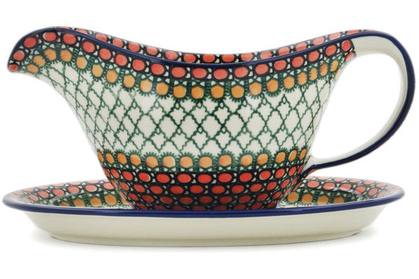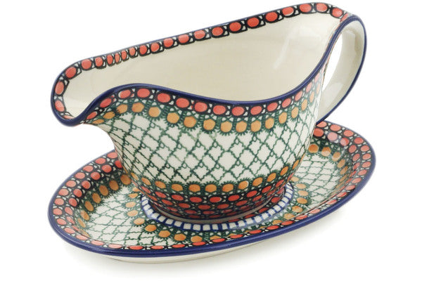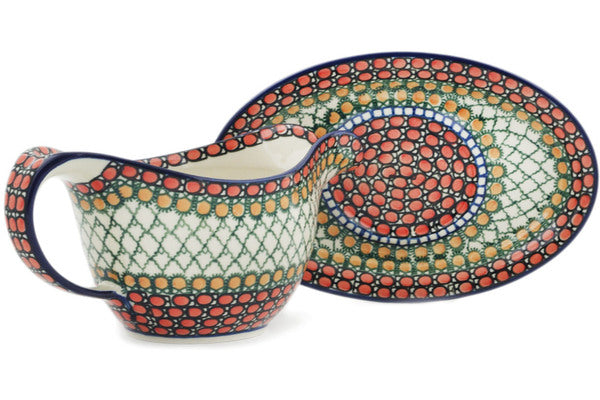 This Polish Pottery 20 oz Gravy Boat with Saucer - Orange Tranquility is handmade and handpainted by the Ceramika Artystyczna factory in Boleslawiec, Poland.